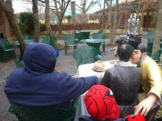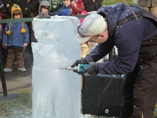 We had a warm, delicious lunch at the Peacock Cafe (Wes approved heartily of the chicken pot pie), and then we watched the ice sculpting that was taking place at various places around the grounds.